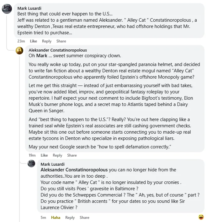 Mark Spins a Conspiracy and Gets Publicly Annihilated by Aleksander “Alley Cat” Constantinoropolous